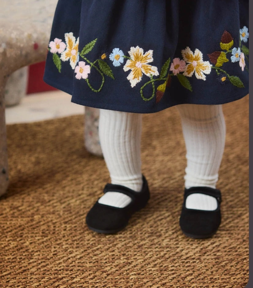 Molo Pinafore dress with floral embroidery colour Navy.