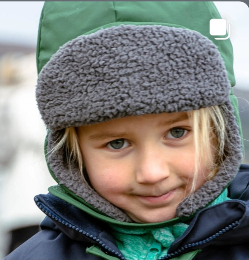 Didriksons waterproof and windproof Bigglrs cap for winter outdoor activity colour Green. This Teddy fleece lined cap will keep your child dry and warm while playing outside in cold weather.