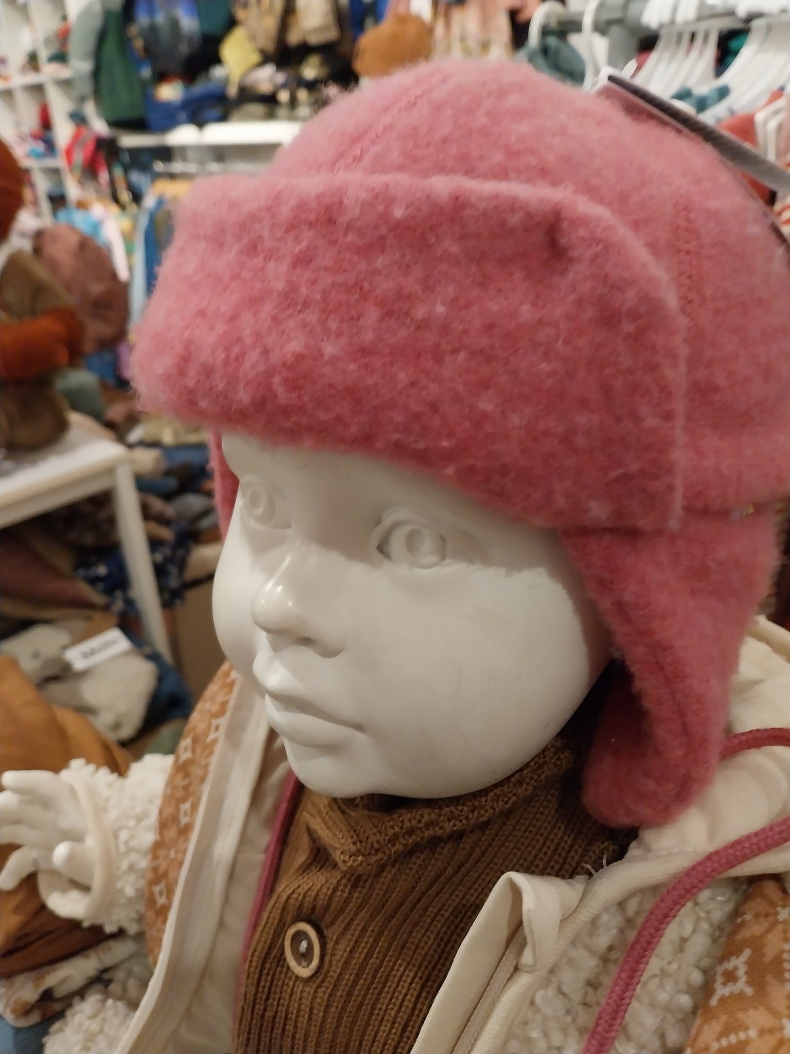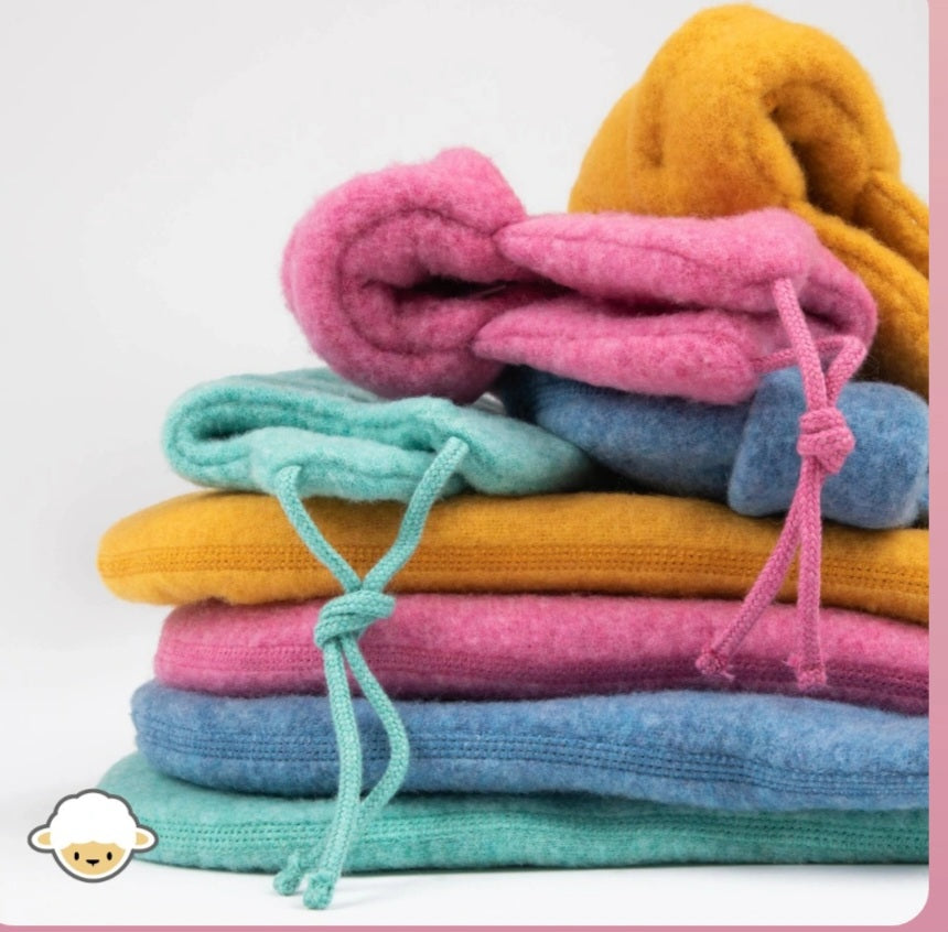 Joha Merino brushed wool helmet colour Raspberry Pink.This super soft hat cover the baby and kids ears.It is made from Merino wool and be machine at washed 30 degrees.